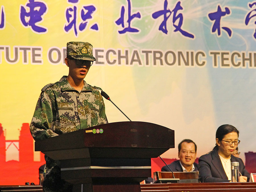 国家级名师,信息工程系专业带头人郭靖老师代表全体教职工,16通信技术专业何晶同学代表在校生,17级机电技术马润华代表新生,秦岭学生军训基地副主任卢春国、军训教官陈航等先后发言,表达了对新生的欢迎和关怀,也对军训和今后的学习生活提出了殷切的期望。