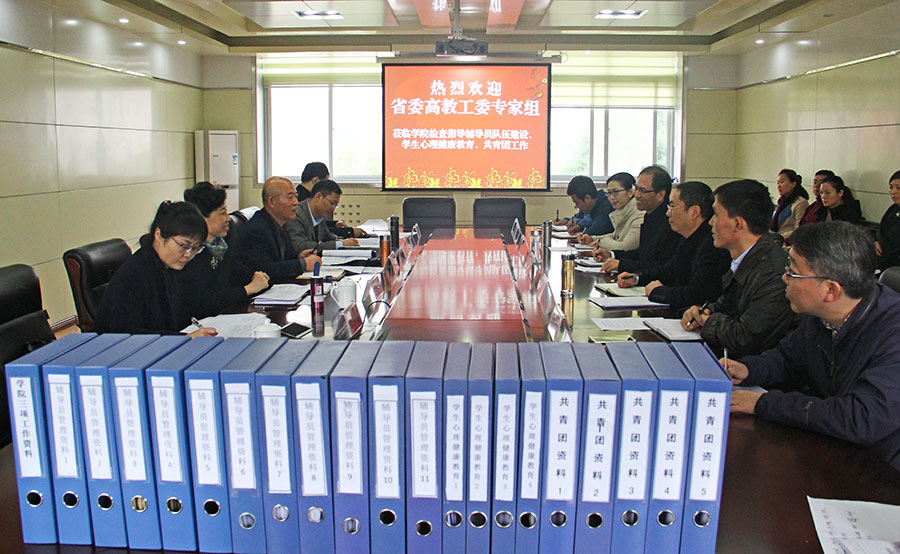 10月16日下午,省委高教工委检查调研组来我院检查调研辅导员队伍建设、大学生心理健康教育及共青团工作(以下简称“三项工作”)。院党委书记、院长伊逊智、党委副书记、副院长邓新治、党委委员、副院长张琴出席,学工部、院团委、党政办、教务部、基础部等部门负责人和辅导员代表、心理健康教育教师、共青团干事参加本次调研汇报。
