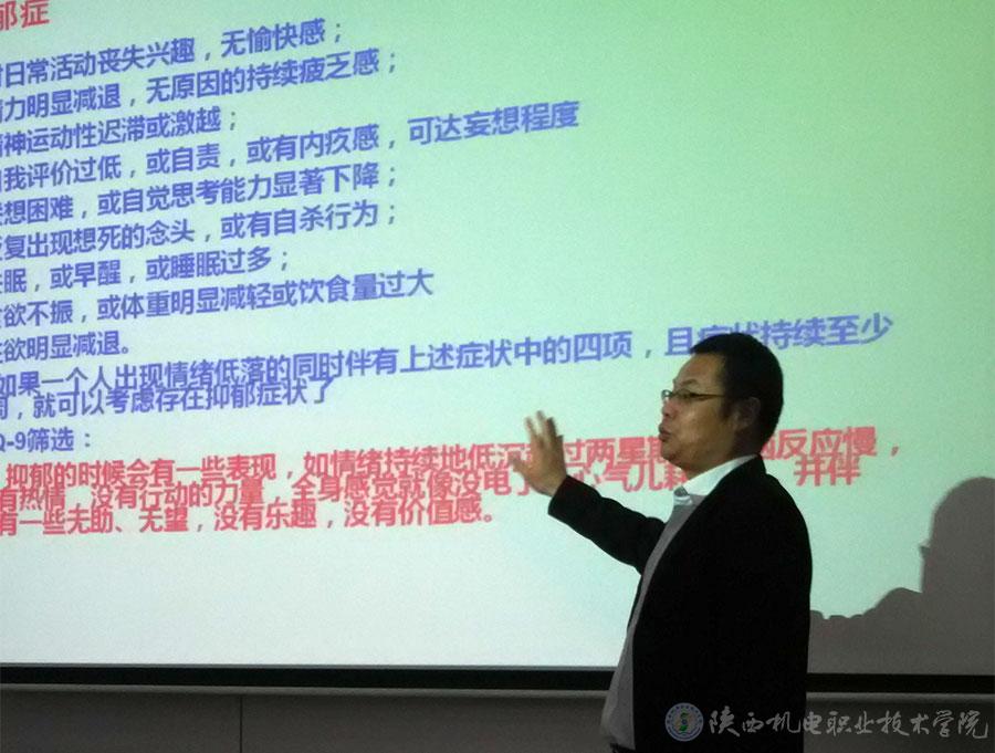 为了更好地给学生提供专业的心理咨询与辅导服务,帮助学生更加健康地学习、生活,学工部于4月12日下午特邀请宝鸡文理学院郭智慧教授,为我院全体辅导员、班主任做了题为《做学生身边的心理健康辅导员》的讲座。
