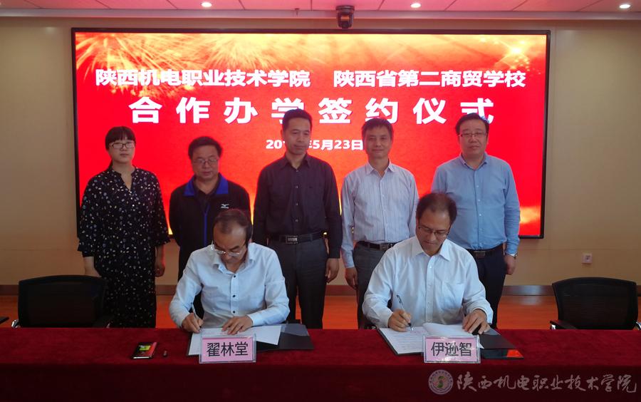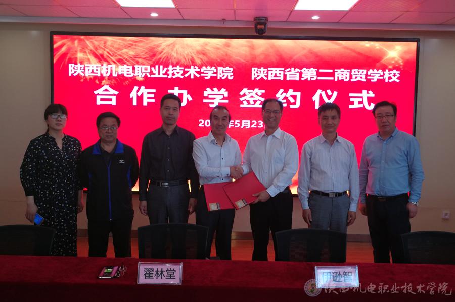 2018年5月23日,学院与陕西省第二商贸学校举行中高职集团化办学签约仪式。学院党委书记、院长伊逊智,副院长张新堂等出席签约仪式。陕西省第二商贸学校校长翟林堂,副校长杜玉锁等一行参观学院并出席签约仪式。