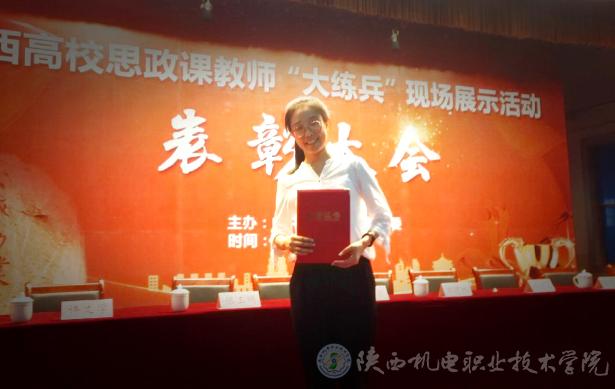 7月13日,陕西高校思政课教师“大练兵”现场展示活动在西北大学举行。我院思政部教师郭阳丽参加了现场展示活动荣获一等奖并被授予“陕西省思政课教学标兵”。这是我院在思政教学成果展示上的一项重要突破,为打造高校“大思政”教学育人体系奠定了良好的基础。