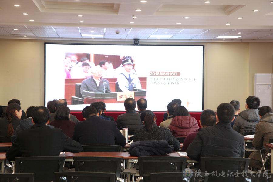邓新治传达了《中共陕西省纪委驻省教育厅纪检组关于组织观看警示教育片<贪与悔>的通知》文件精神,要求全体干部按照学院党委“讲政治、敢担当、改作风”专题教育要求加强自身廉政教育,切实增强廉洁自律意识,提高拒腐防变能力,从警示教育片中汲取深刻教训,自觉践行忠诚干净担当,永葆清正廉洁的政治本色。