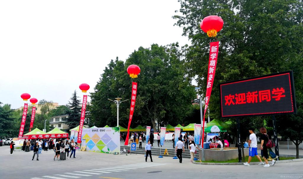 迎新工作有序展开,书写着“热烈欢迎新同学”的空飘气球,高高耸立在学院南门广场,道路两旁彩旗迎风招展,新生签名墙前驻足着留影的新生和送行家人。校园内随处可见书写着不同迎新寄语的横幅、喷绘,表达着对新同学的热烈欢迎与祝贺,营造着浓厚的开学氛围,成为迎新工作中一道亮丽的风景线。