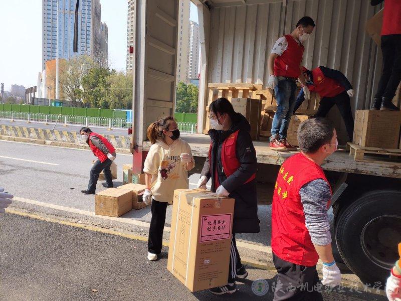 为甘肃医疗队搬运物资(图中穿黑色衣服的是卢子昕)