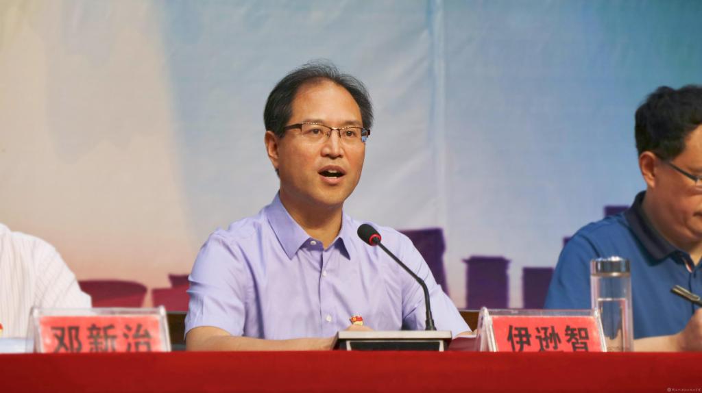 邓新治宣读《中共买球赛的app官网委员会关于庆祝建党99周年暨表彰先进党支部、优秀共产党员、优秀党务工作者的决定》
