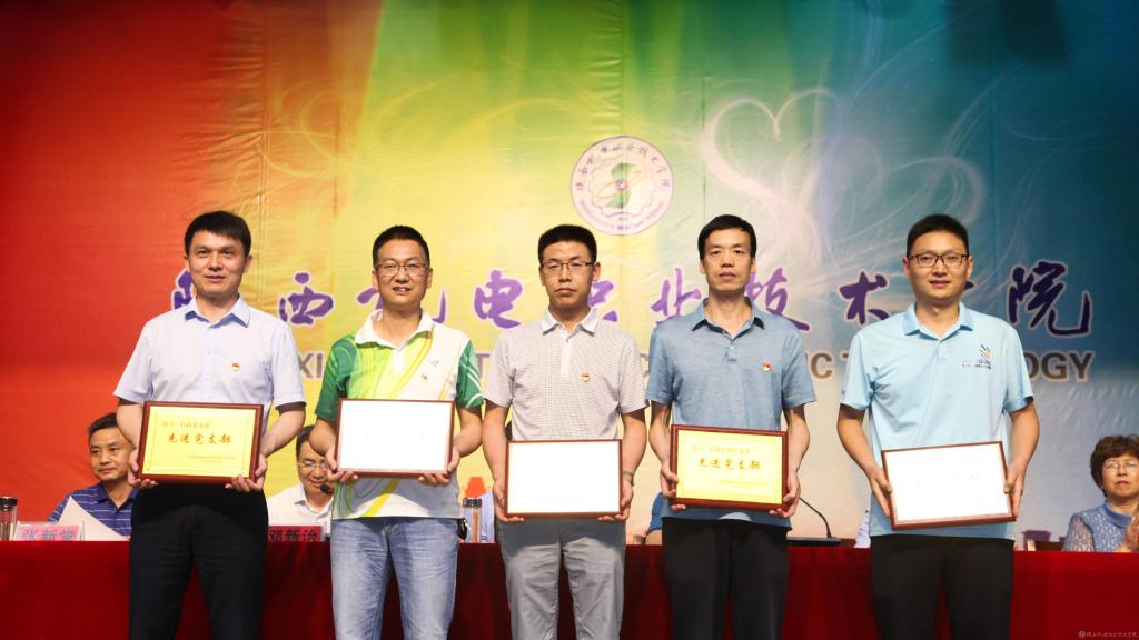 邓新治宣读《中共买球赛的app官网委员会关于庆祝建党99周年暨表彰先进党支部、优秀共产党员、优秀党务工作者的决定》并颁奖,授予行政党支部等5个单位“先进党支部”,授予徐圣月等18名同志“优秀共产党员”称号,授予邢平等3名同志“优秀党务工作者”荣誉称号。