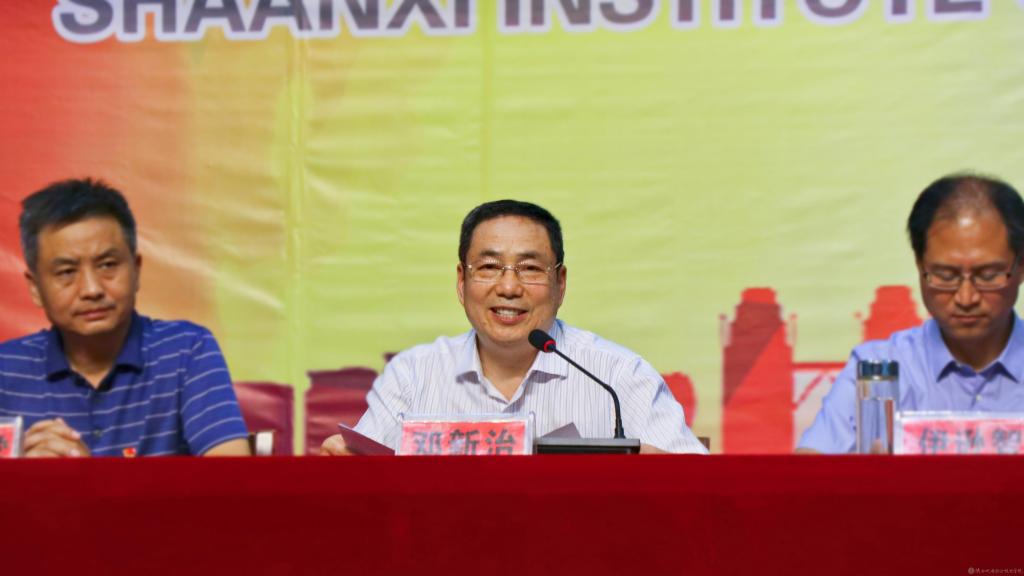 向纪明做总结发言,他强调,各级党组织和全体党员要以习近平新时代中国特色社会主义思想为指导,认真领会、抓好落实,切实与学校党委同心同德同向,共同建设发展陕机电,奉献青春才华,以优异成绩迎接建党100周年。