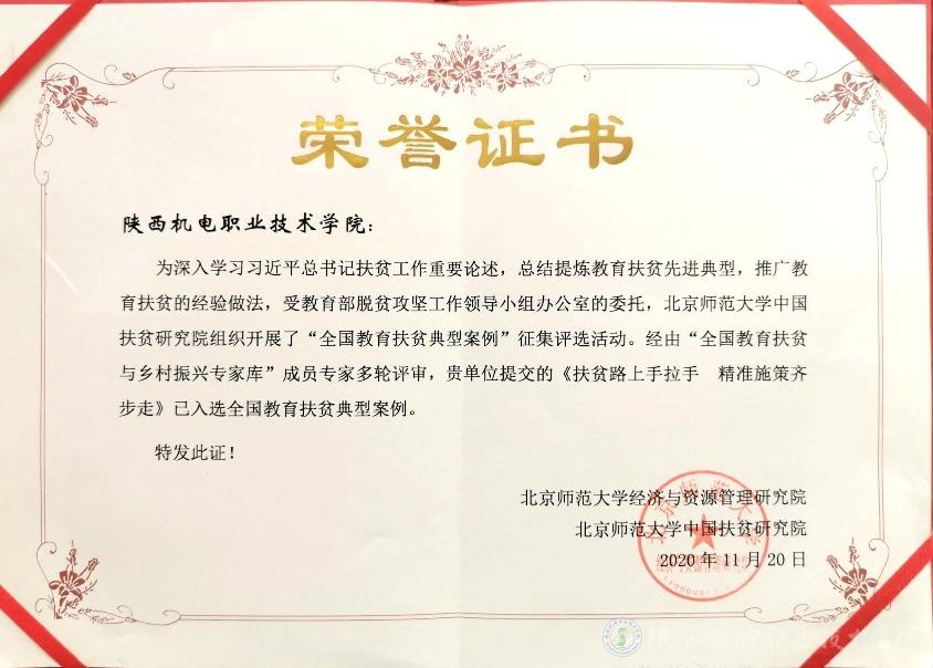 近日,受教育部脱贫攻坚工作领导小组委托,由北京师范大学扶贫研究院具体负责的全国教育扶贫典型案例征集活动,经“全国教育扶贫与乡村振兴专家库”成员多轮评审,评选并公布了全国教育扶贫典型案例235项。我校报送的案例《扶贫路上手牵手 精准施策齐步走》成功入选。