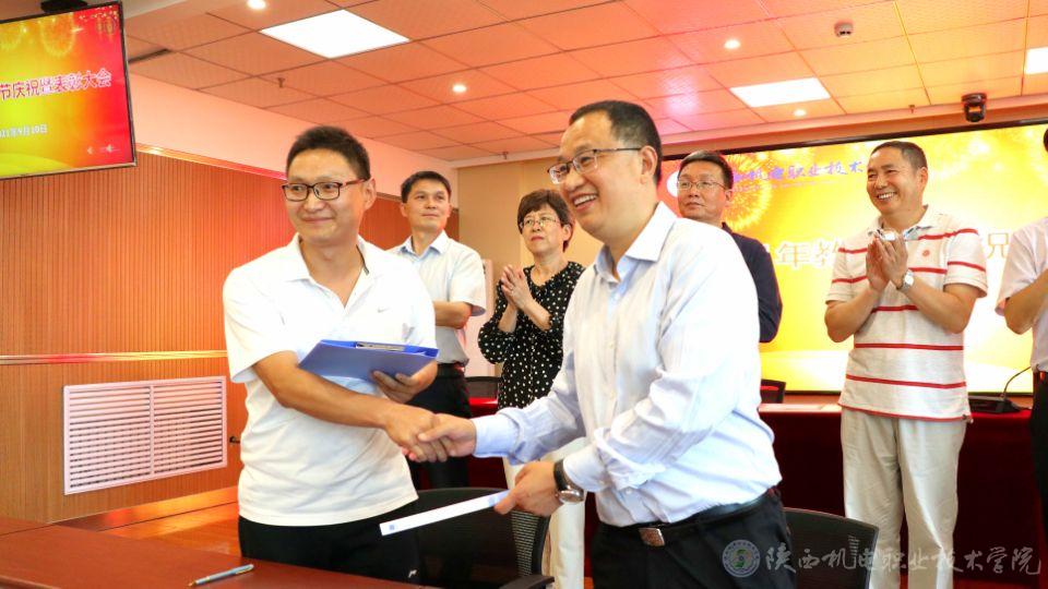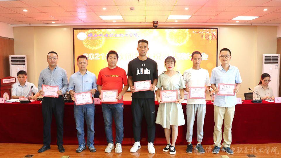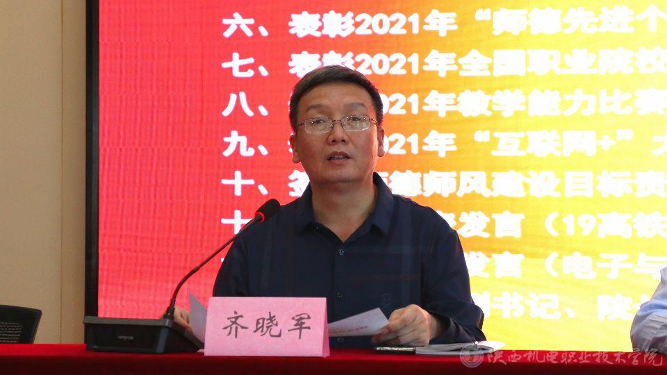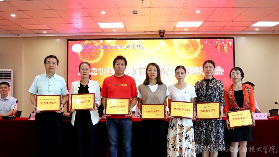 邓新治宣读2021年“优秀教学团队” 表彰文件并为机械系、电气系、电子系、建筑系、数学教研室、高速铁路客运服务系、英语教研室7个“优秀教学团队”颁奖。