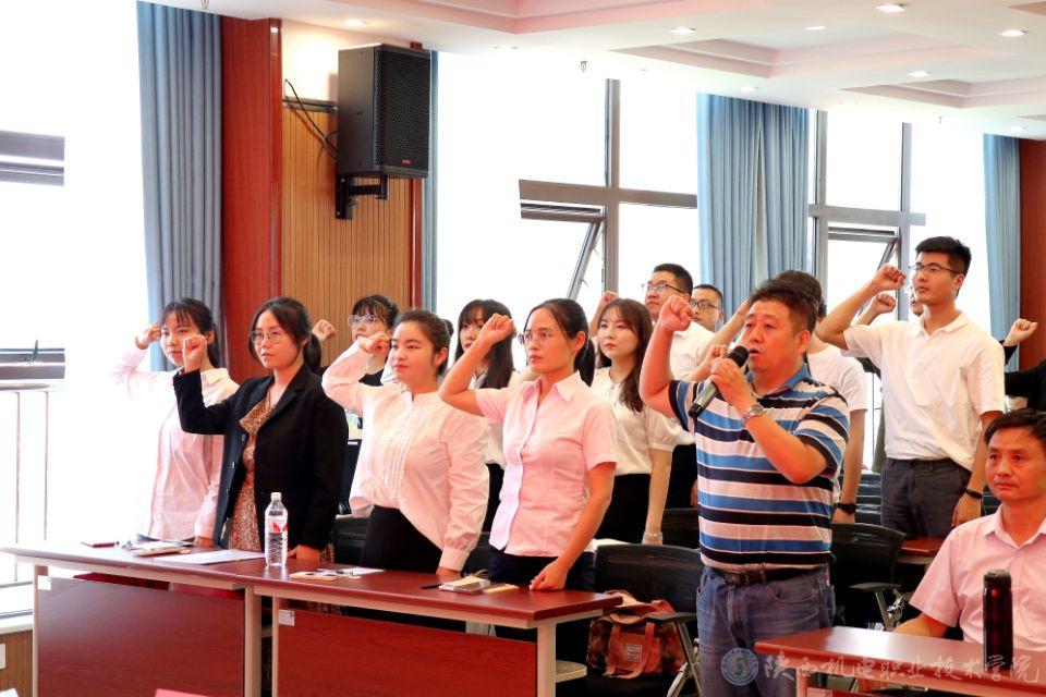 大会在雄壮的国歌声中拉开帷幕,人事处处长、教师发展中心主任罗亚军带领2021年新入职教师宣誓。