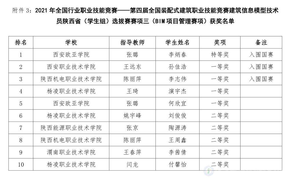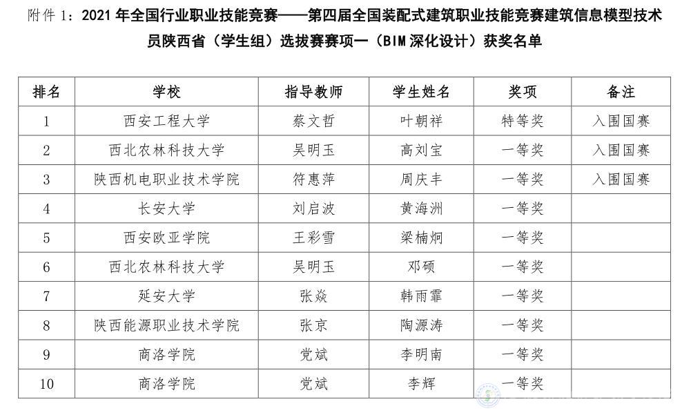 由陕西省建设教育协会主办、买球赛的app官网承办,杭州品茗安控信息技术股份有限公司、廊坊市中科建筑产业化创新研究中心协办的2021年全国行业职业技能竞赛一第四届全国装配式建筑职业技能竞赛(学生组)陕西省选拔赛于2021年10月22日在线上隆重举行。大赛共分为BIM深化设计,BIM投标应用,BIM项目管理三个模块。我院派出符惠萍、张悦、陈丽萍三个老师分别辅导三名学生参加三个模块的比赛,与来自全省28所本、专科院校,265名选手进行了激烈角逐。
