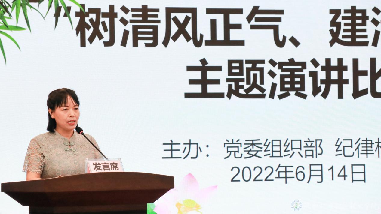 参赛选手们高度重视,准备充分,紧紧围绕“树清风正气、建清廉校园”主题,结合立德树人、廉洁传承,声情并茂地讲述着廉洁故事和先进事迹,从不同角度和层面诠释了对“廉洁”的深刻理解。演讲作品中有弘扬廉洁文化、筑造廉政中国的逐梦之旅,有歌颂廉洁奉公典范人物的华彩篇章,有潜心育人、彰显廉洁情怀的铮铮誓言,也有对营造廉洁校园文化的思考与凝炼,充分展示了我校教师党员充满理想激情、积极奋发进取的精神风貌。演讲过程中,选手们时而激情澎湃,时而舒缓动情,他们以饱满的热情,昂扬的精神状态,满腔的热忱给在场观众带来一次又一次精神上的洗礼,引得现场听众强烈的震撼和共鸣,博得了阵阵掌声。