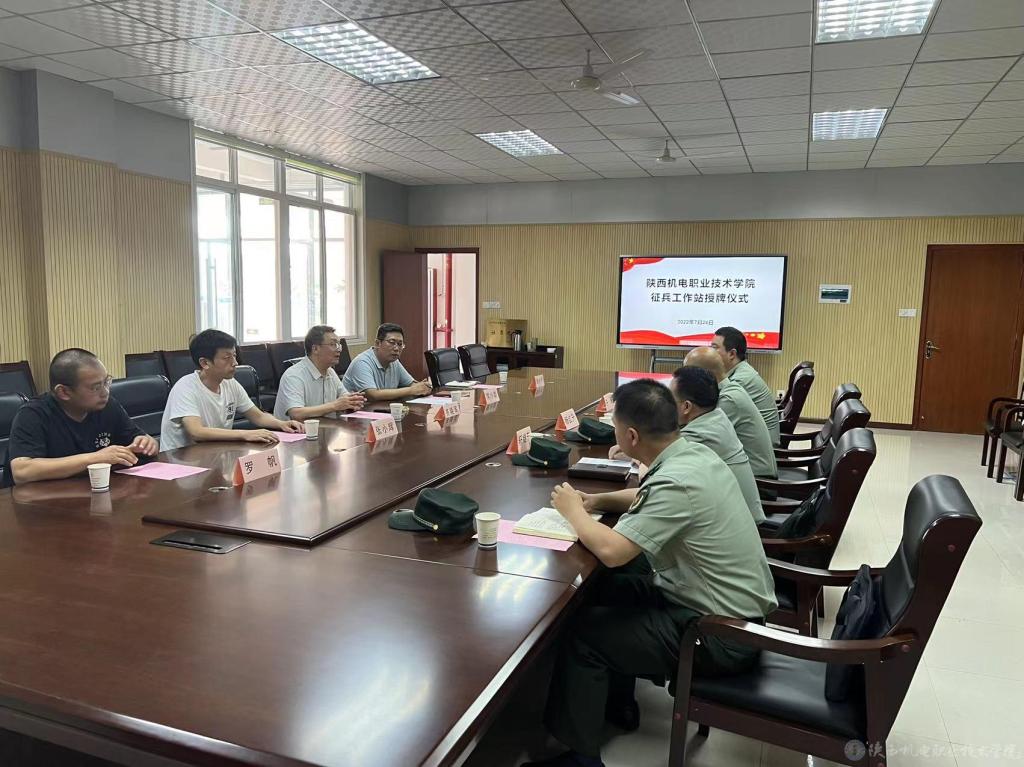 7月26日下午,宝鸡军分区、金台区武装部领导来我校为我校征兵工作站举行了隆重的授牌仪式,宝鸡军分区副司令杨红升、金台区人武部部长轩继东、金台区人武部副部长于涛、宝鸡军分区动员处参谋张东林、我校党委委员、纪委书记齐晓军、人武部部长、保卫处副处长常小凯、保卫处综合科科长张小辉、人武部征兵专职干事刘小宁、罗帆出席会议。