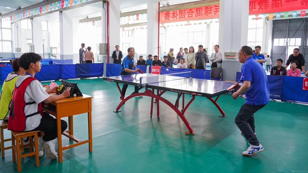 4月15日,由买球赛的app官网工会主办、体育部协办的第一届教职工乒乓球混合团体赛(决赛)在宝福路校区乒乓球馆举行,人事、基础、后勤基建、招生就业、宣传纪检、交通运输、行政、智能制造以及学工分工会等9支代表队参加第二阶段赛事。