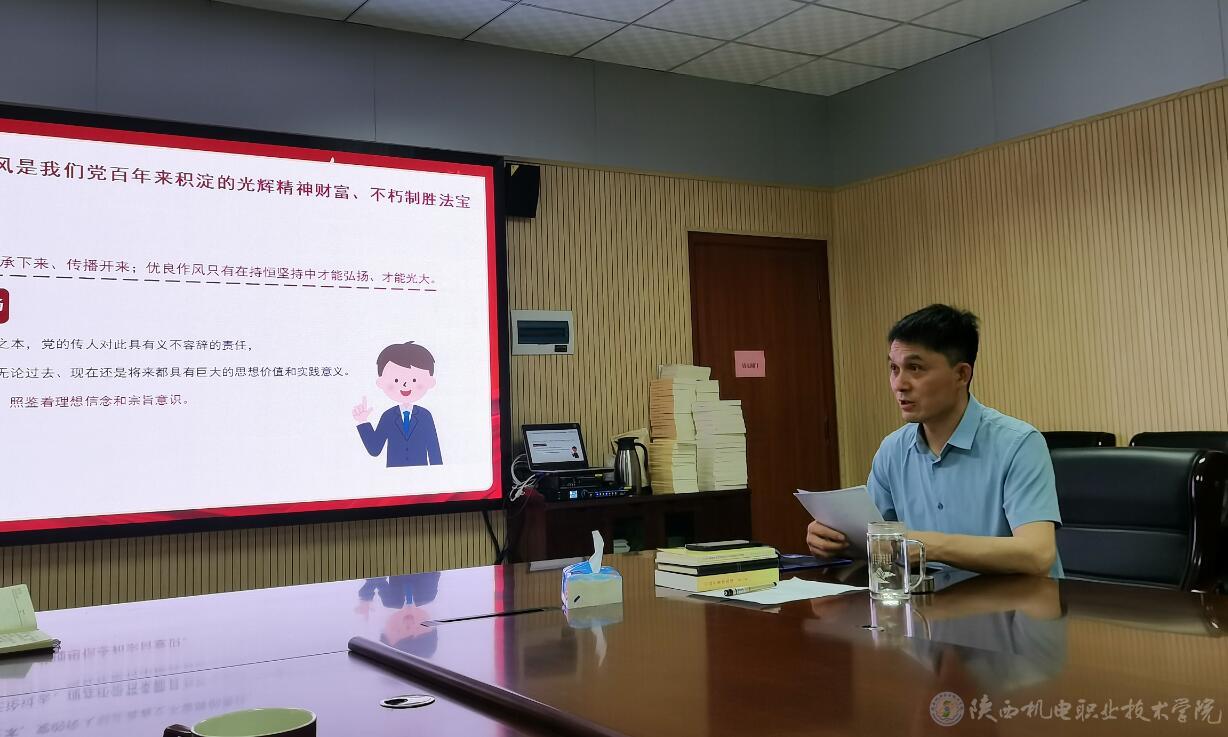 赵争东同志从“作风建设这一主题贯穿五堂‘第一课’始终”“光荣传统和优良作风是我们党百年来积淀的光辉精神财务和不朽制胜法宝”“深刻把握新时代作风建设的新内涵新要求”“将干部作风建设贯穿于主题教育各项举措”等四个方面,结合国内外政治经济发展、党政部门、教学单位工作实际进行了讲述,重点强调了如何做好新形势下的作风建设,并将作风建设贯穿于主题教育理论学习、调查研究、推动发展、检视整改、建章立制全过程,切实推进主题教育与作风建设统筹协调、一体推进。他强调,全体党员要以此次主题教育为契机,坚持学思用贯通、知信行统一,把习近平新时代中国特色社会主义思想转化为坚定理想、锤炼党性和指导实践、推动工作的强大力量,切实把作风建设贯穿到主题教育各项举措中,融入日常教育教学工作,融入为师生办实事、为学校谋发展的实际行动中,为学校事业高质量发展贡献自己的力量。