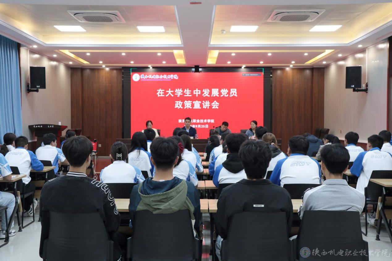 为进一步做好入党启蒙教育,激发大学生要求入党的热情,2023年9月25日,学校党委组织部、校团委组织开展在大学生中发展党员政策宣讲会,宣讲会在蟠龙校区111室和宝福路校区汽车机电大楼四楼会议室同时举行。党委委员、院长助理、组织部部长赵争东,校团委书记王枢,各二级学院团总支书记、辅导员代表,各班团支书参加会议,会议由党委组织部综合科科长张玉琼主持。