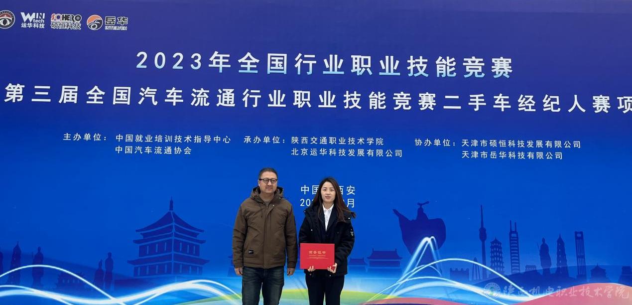 2023年12月7日至10日,由中国汽车流通协会和中国就业培训技术指导中心主办,陕西交通职业技术学院和北京运华科技发展有限公司承办的2023年全国行业职业技能竞赛第三届全国汽车流通行业职业技能竞赛二手车经纪人赛项决赛在陕西省西安市举行。来自全国21个省、自治区、直辖市的行业企业员工、技工院校职工共50余支参赛队伍参加。我校交通运输学院教师韩雪经过2天的激烈角逐,取得职工组三等奖的好成绩。
