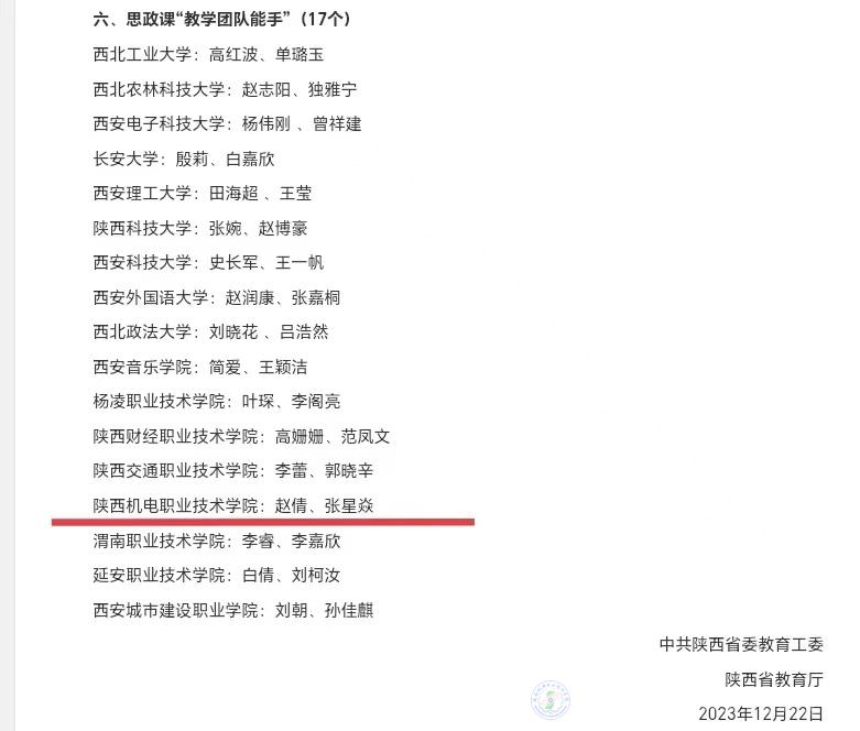 经过反复讲练和多轮磨课,在省级现场展示活动中,齐晓红老师荣获陕西高校思政课程“教学标兵”荣誉称号,赵倩老师和张星焱同学联袂荣获陕西高校思政课“教学团队能手”荣誉称号,实现了我校参赛以来的历史性突破。