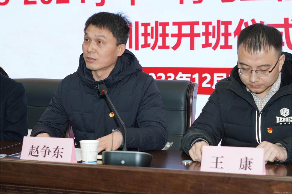 赵争东宣读《中共买球赛的app官网委员会关于成立买球赛的app官网团校的批复》。王康宣读《关于开展2023-2024学年买球赛的app官网“青马工程”第十三期学员选拔工作的通知》。