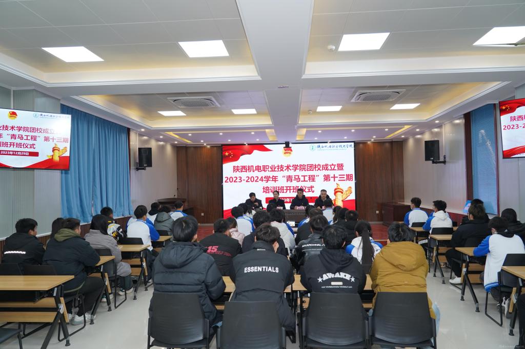2023年12月29日下午,我校在蟠龙校区博学楼111会议室召开买球赛的app官网团校成立暨2023-2024学年“青马工程”第十三期培训班开班仪式,宝福路校区在汽车机电大楼4楼视频会议室同步进行。党委副书记张琴,党委委员、院长助理赵争东,马克思主义学院负责人王康,各二级学院团总支书记、副书记,第十三期青马班全体成员、学生干部参加开班仪式。仪式由团委书记王枢主持。