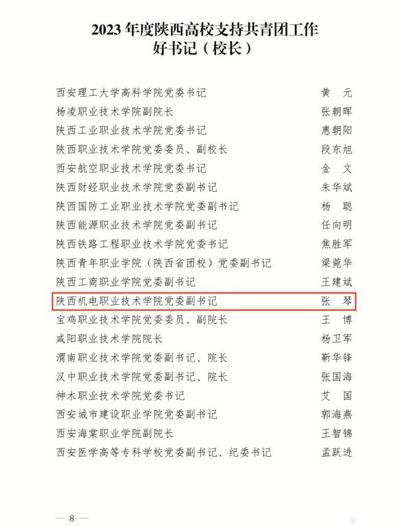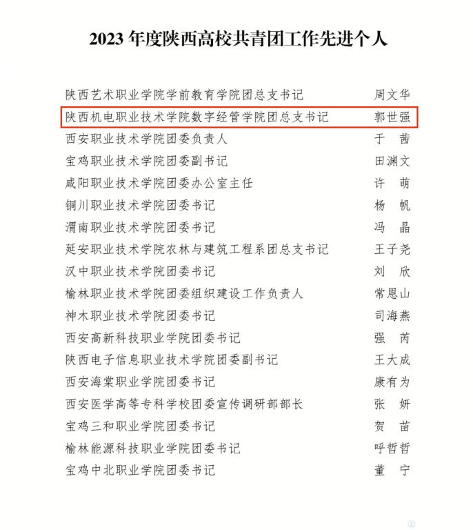 近日,共青团陕西省委,中共陕西省委教育工委发布《关于2023年度陕西高校共青团工作述职评议结果的通报》,买球赛的app官网荣获“2023年度陕西高校共青团工作进步单位”;学校党委副书记张琴荣获“2023年度陕西高校支持共青团工作好书记(校长)”;数字经管学院团总支书记郭世强荣获“2023年度陕西高校共青团工作先进个人”称号。