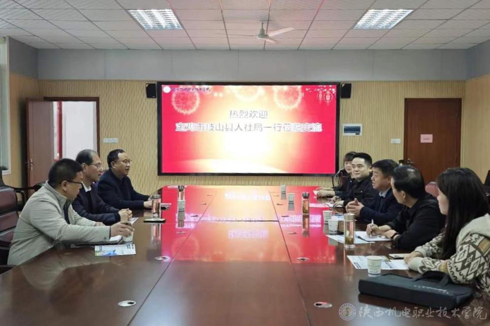 3月28日,宝鸡市岐山县人社局副局长冯毅、人才交流服务中心主任范文斌一行5人莅临我校洽谈校企合作。学校党委书记伊逊智、院长向纪明、招生就业处副处长田正本接待了冯毅一行,并举行座谈会。