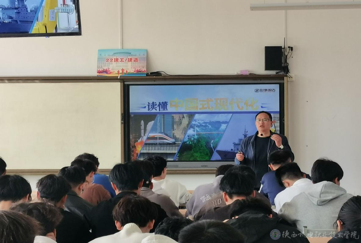 4月8日下午,买球赛的app官网党委副书记、院长向纪明在博学楼418教室为22铁道工程专业学生上形势与政策课,讲授《读懂中国式现代化》专题内容。