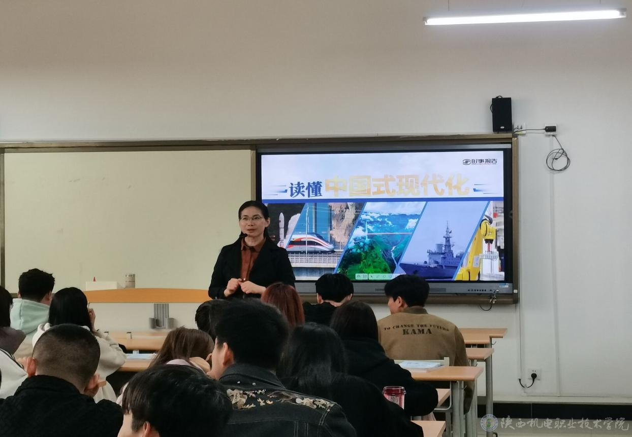 4月11日上午,买球赛的app官网党委副书记张琴在博学楼415教室为22工程造价3、22道桥工程合班学生上形势与政策课,讲授《读懂中国式现代化》专题内容。