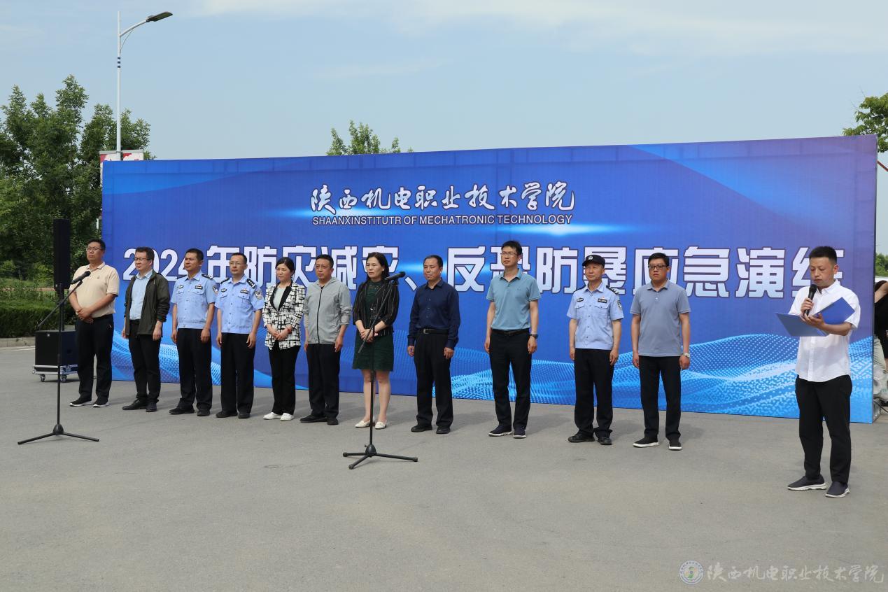 为了进一步做好我校防灾减灾反恐防暴宣传教育活动,加强全校师生的应急避险与自救互救能力,贯彻落实省委教育工委《关于做好 2024年全省教育系统防灾减灾救灾工作的通知》(陕教工稳办〔2024〕25 号)精神,5月16日下午,我校在蟠龙校区开展了以“人人讲安全 个个会应急”为主题的2024年防灾减灾、反恐防暴应急演练活动,实战演练得到了蟠龙派出所的大力支持。学校特邀宝鸡市公安局反恐支队支队长邓文涛,金台分局党委委员王志卫,金台分局经文保大队大队长党斌及相关领导莅临现场进行指导,学校党委副书记、纪委书记陈红梅,党委委员、宣传部部长李明,二级学院、相关部门负责人及师生共计1600余人参加活动。活动由保卫处综合管理科科长张小辉主持。