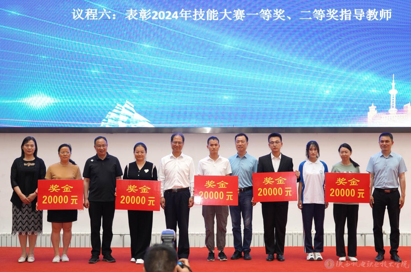 与会人员集中观看了我校第七届全国高校大学生讲思政课公开课展示活动高职组一等奖作品《传承红色基因 筑起铁路脊梁》,汲取了中国铁路追赶超越的非凡战绩和中国铁建人匠心独运、以身报国的精神风貌,坚定了听党话、跟党走的目标和信心。并对我校2024年陕西省职业院校技能大赛一等奖、二等奖获奖教师进行了表彰。