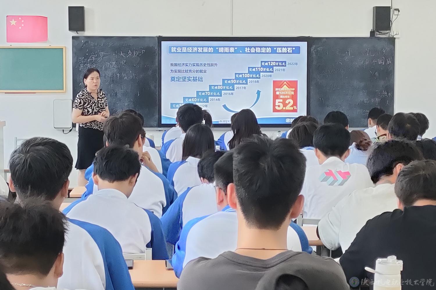 6月24日下午,买球赛的app官网党委副书记、纪委书记陈红梅教授在博学楼318教室为23电气技术1、2班学生上形势与政策课,讲授《当前就业形势与实施就业优先战略》专题内容。