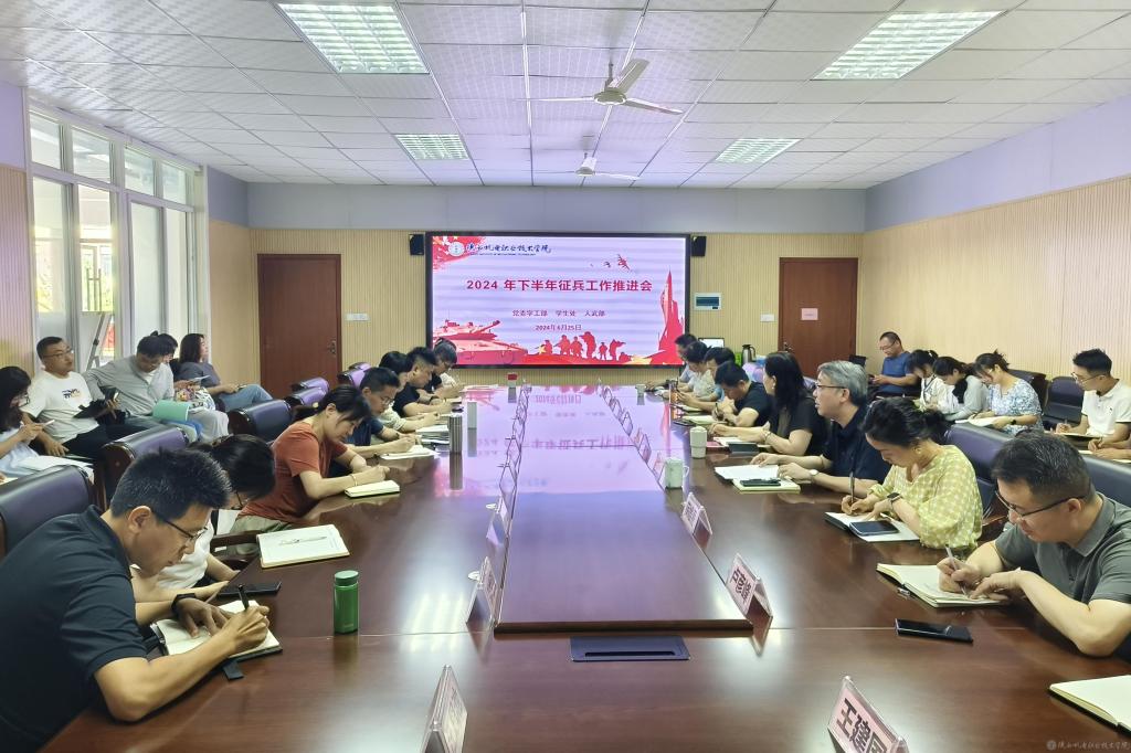 6月25日上午,我校在蟠龙校区图书馆2楼会议室组织召开2024年下半年征兵工作推进会,党委副书记、纪委书记陈红梅,学工系统科级以上干部、全体专职辅导员、人武部以及学生资助中心干事参加。会议由党委学工部部长、学生处处长、人武部部长王建斌主持。