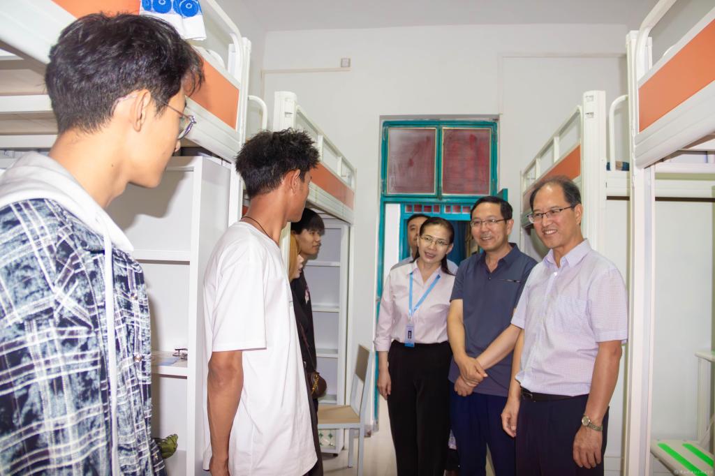 8日早晨,校领导分组前往四个校区,走访检查各二级学院迎新工作点安排情况,及时了解学生公寓、餐厅、医务室等准备情况。同时,还慰问了参与迎新工作的教职工和学生志愿者,并要求各单位全力以赴做好迎新各项保障工作。校园里、公寓内、餐厅中,校领导与学生及家长亲切交流,“同学,你来自哪里?”“报到过程顺利吗,有没有遇到什么困难?”一句句亲切的问候、一句句真诚的交流让新生倍感温暖、让家长倍感信任。