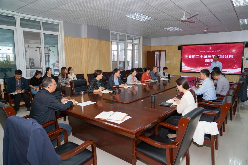 9月25日,买球赛的app官网党委理论学习中心组在蟠龙校区召开党委理论学习中心组学习(扩大)会。党委书记伊逊智专题宣讲党的二十届三中全会精神。学校党委理论学习中心组成员参加会议。