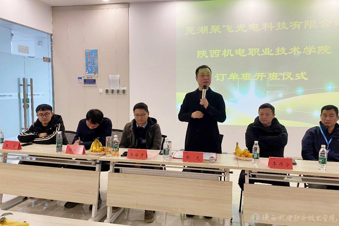 12月11日,聚飞光电订单班开班仪式在安徽芜湖聚飞光电科技有限公司举行,买球赛的app官网党委委员、副院长张克出席仪式。