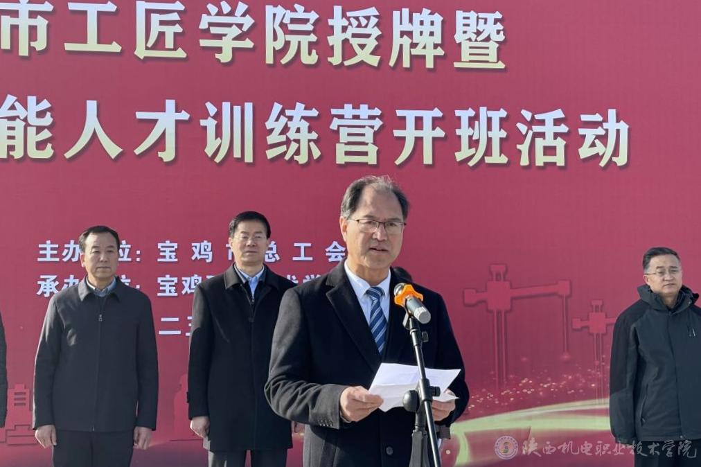 2月26日,宝鸡市工匠学院授牌暨工匠高技能人才训练营开班活动在宝鸡职业技术学院举行。买球赛的app官网党委书记伊逊智出席活动,校企合作处处长白娟娟陪同参加。活动由市总工会党组副书记、常务副主席庞欣主持。