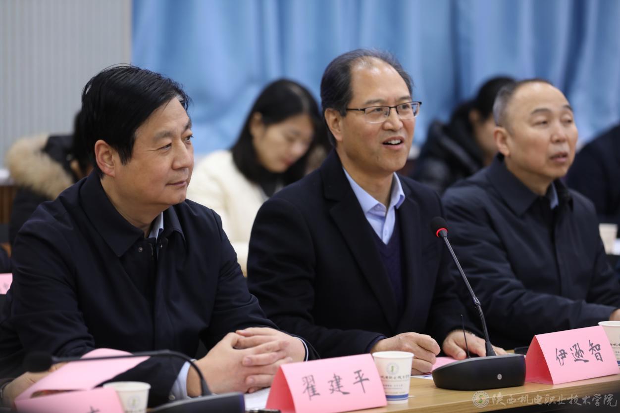 伊逊智对宝鸡市政府各位领导和企业代表的到来表示热烈欢迎,介绍了学校的发展历史、专业发展格局、“366”产教融合工作机制、“九维育人”模式、“三步走”发展战略目标等。他表示,学校将按照“提质量、创特色、树品牌”的总思路,聚焦“双高计划”“新双高”建设和创建职业本科院校,以办学能力高水平、产教融合高质量为目标,积极对接宝鸡市战略布局、重点产业,为区域产业升级和经济社会发展贡献力量。