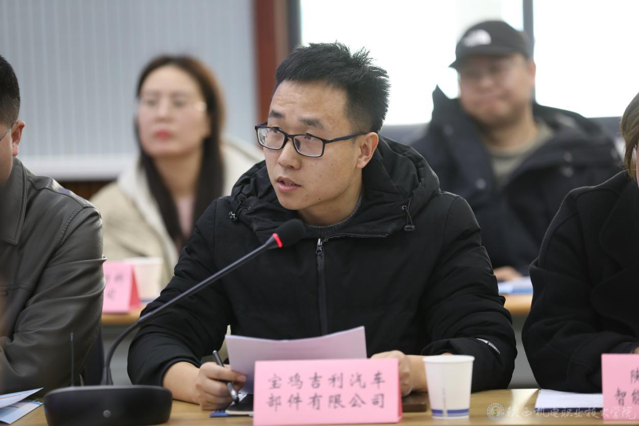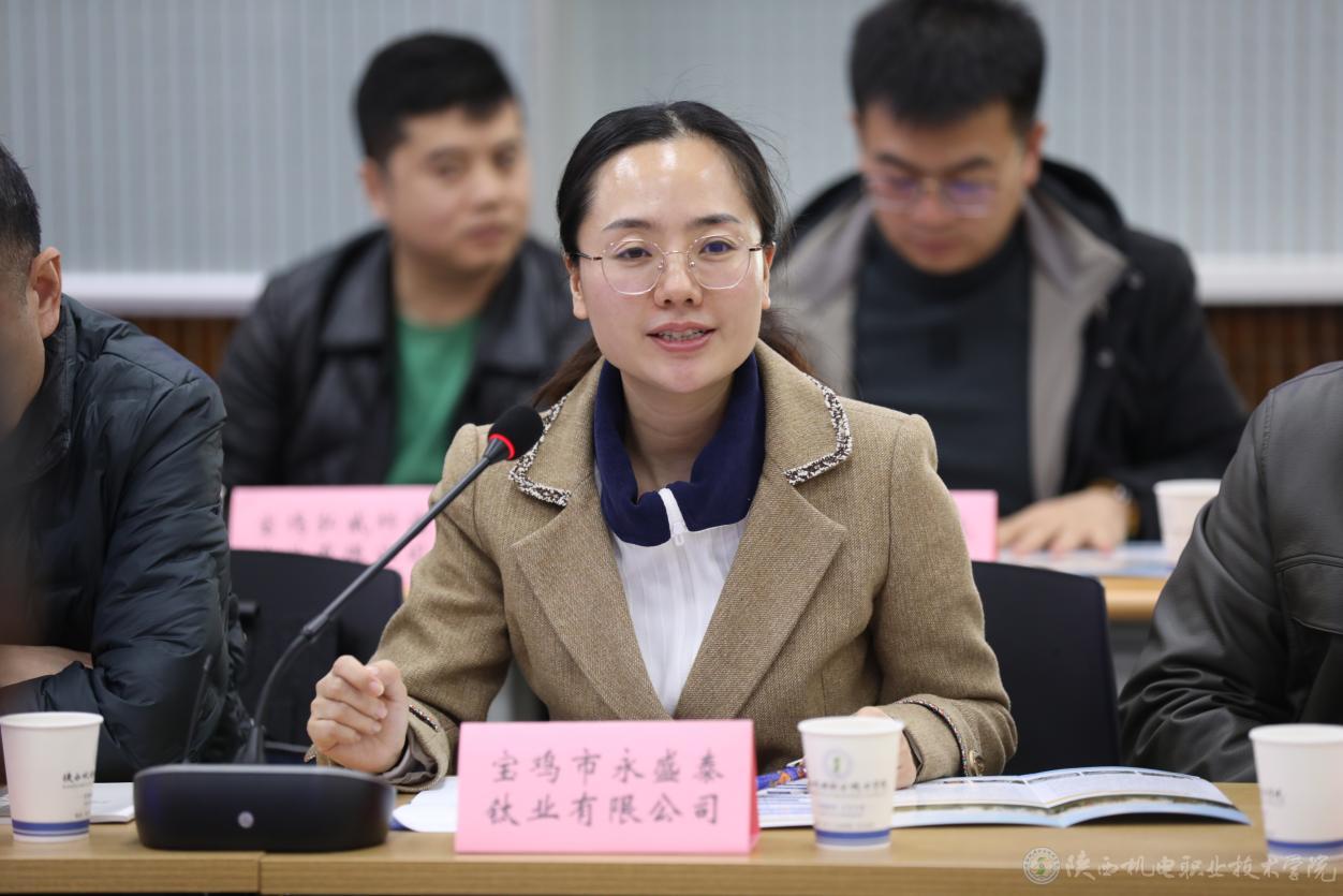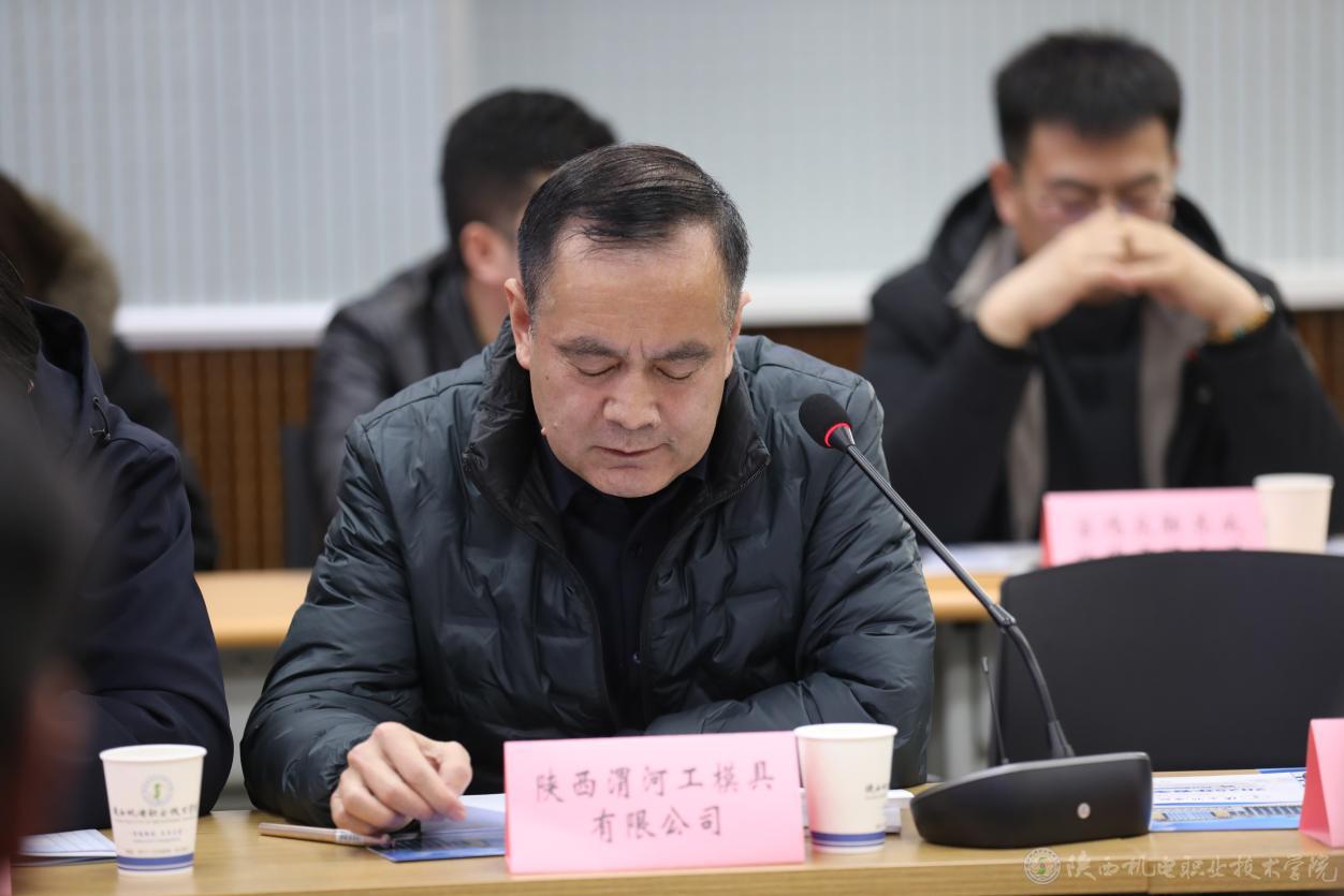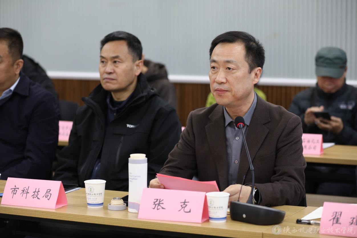 张克以《产城互融、园校一体,产-教-城共生融合发展》为题,作了学校校企合作专项汇报;宝鸡市永盛泰钛业有限公司、宝鸡吉利汽车部件有限公司、陕西壹控智飞智能科技有限公司、秦川机床工具集团有限公司、陕西渭河工模具有限公司等五家企业做了专题发言;参会代表围绕技术合作需求和人才需求等情况进行了讨论发言。