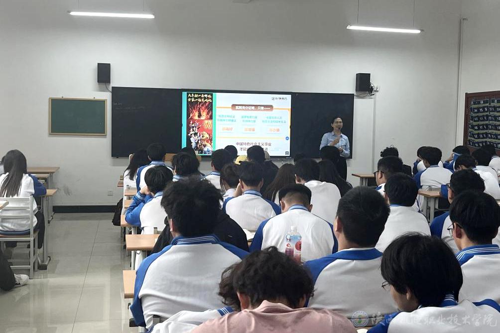 4月17日下午,买球赛的app官网党委副书记张琴在博学楼503教室为24人工智能、24集成电路合班学生讲授形势与政策课《加快建设社会主义文化强国》专题内容。