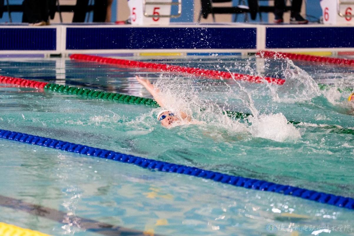 本次赛事由陕西省学生体育协会主办,于2025年6月1日至6月4日在西安高新一中实验中学举行,吸引了包括众多本科名校在内的全省140余支队伍同场竞技,竞争激烈。作为首次参赛且是大学甲组唯一一所职业院校代表队,我校游泳队面临巨大挑战。然而,队员们不畏强手,展现出了顽强的斗志和良好的竞技状态。在备受关注的单项角逐中,我校选手张宇辉在甲组男子50米自由泳和50米仰泳比赛中凭借稳定的发挥和出色的冲刺能力,分别斩获第五名和第六名的好成绩。