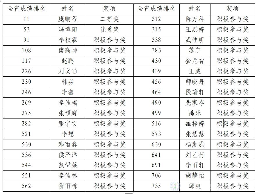 近日,竞赛活动结果揭晓。马克思主义学院教师任蒙蒙荣获教工组优秀奖,王乐琴、高雅妮荣获优秀指导教师奖,我校34名学生获奖,其中庞鹏程同学荣获二等奖,冯博阳同学荣获优秀奖,李权霖等32名同学荣获积极参与奖,马克思主义学院获得“优秀组织奖”。