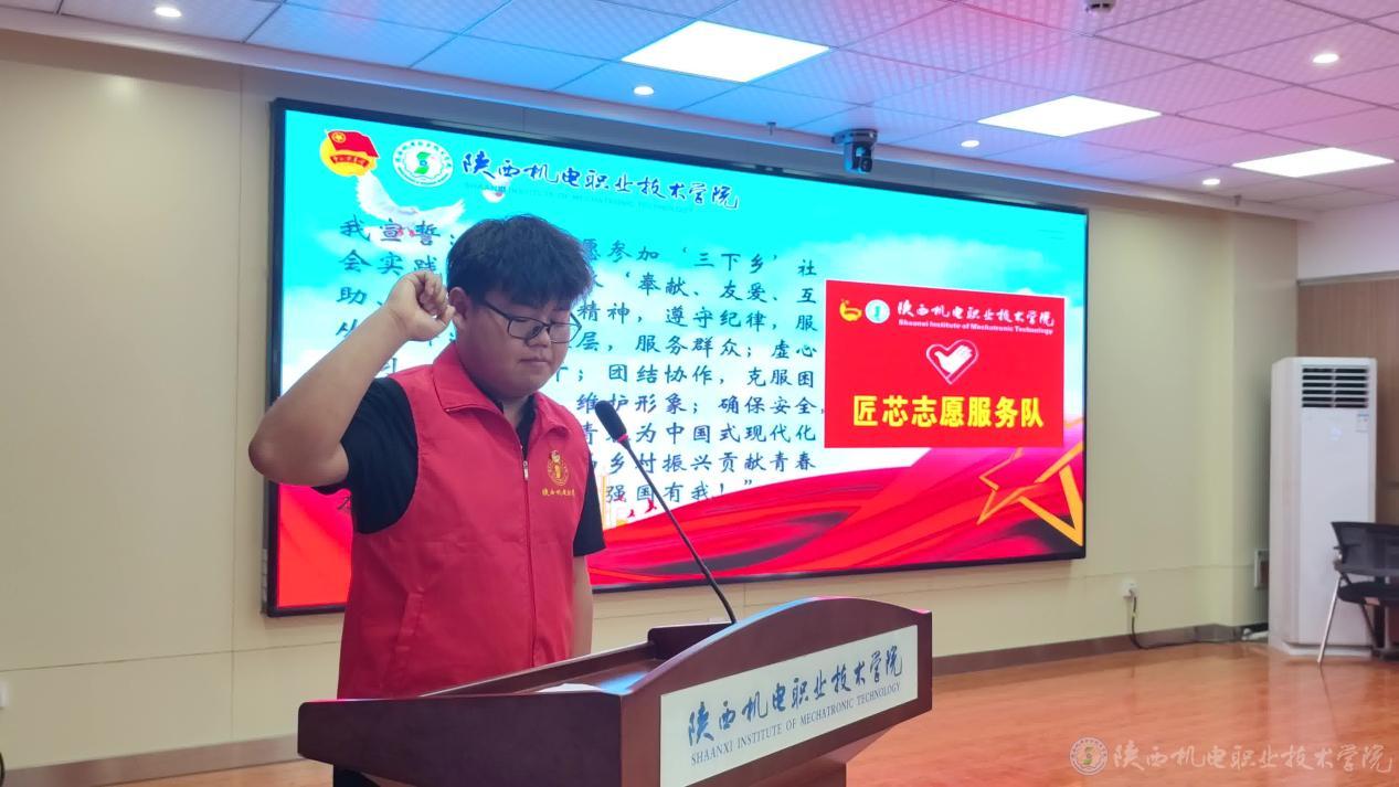 仪式在雄壮的中华人民共和国国歌声中拉开序幕。随后,现场播放了我校历年暑期“三下乡”活动视频集锦,过往实践中队员们深入基层、服务群众的画面生动展现了志愿精神的传承,引发在场师生的强烈共鸣。