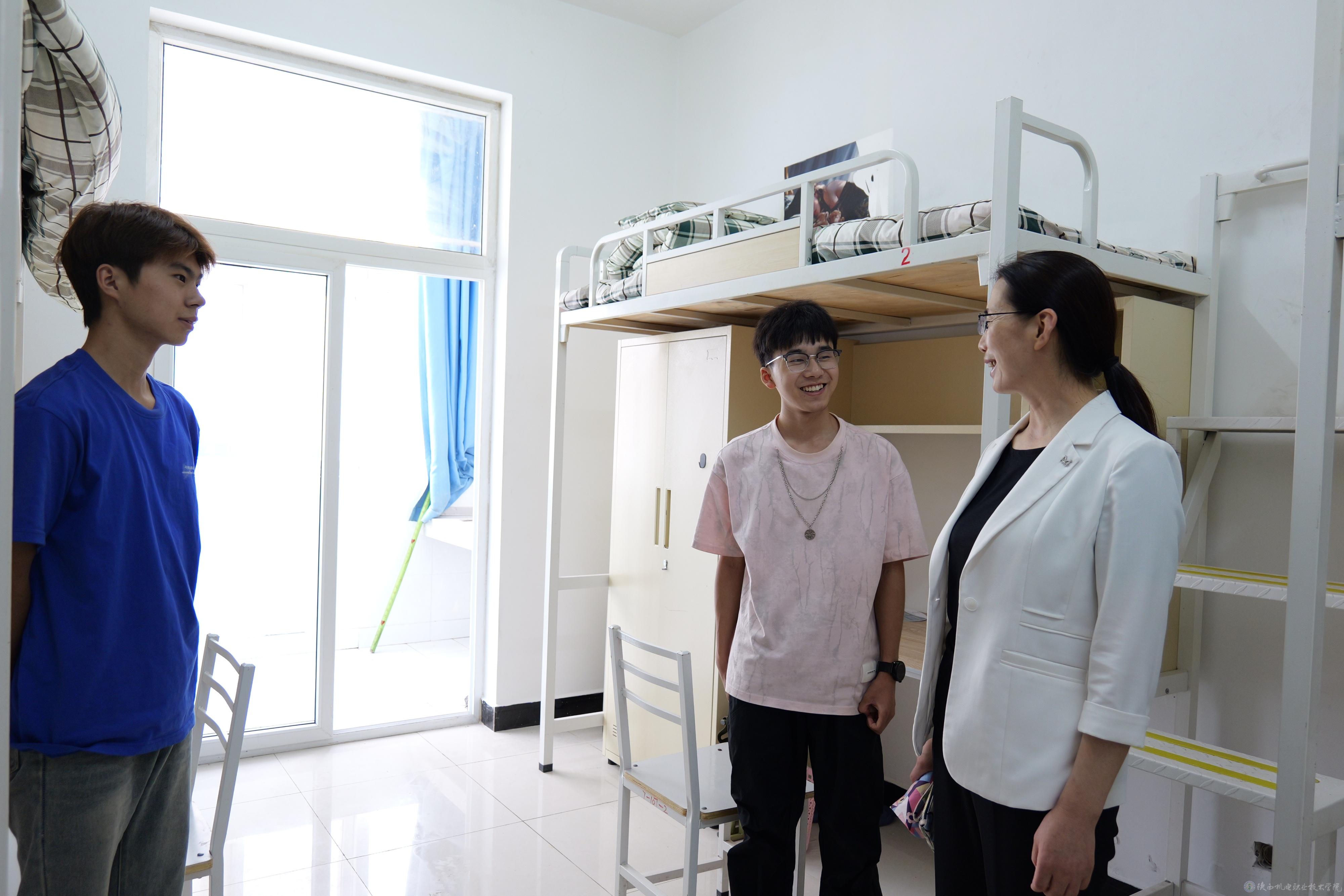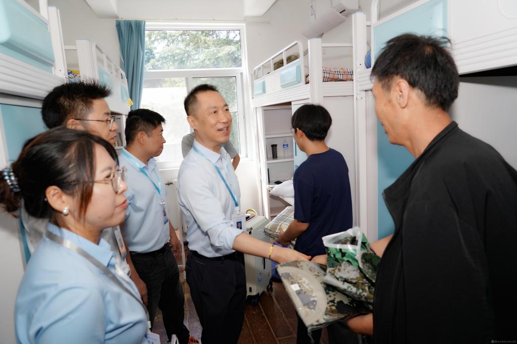报到期间,校领导分组前往各校区,走访检查迎新点各项工作开展情况,慰问全体迎新工作人员和学生志愿者。校园里、公寓内,校领导与学生及家长亲切交流,“同学,你来自哪里?”“对学校环境还满意吗?”一句句亲切的问候、真诚的交流拉近了学校与学生及家长之间的距离,让新生和家长倍感温暖和安心。