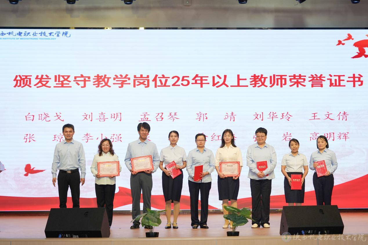 赵争东为坚守教学岗位25周年以上教师颁发证书。