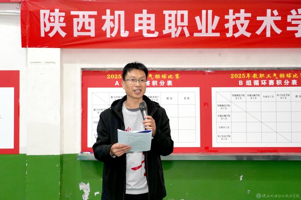 在全场热烈的掌声中,党委书记伊逊智宣布:“2025年教职工气排球比赛,现在开幕!”至此,这场初冬的激情赛事正式拉开战幕。