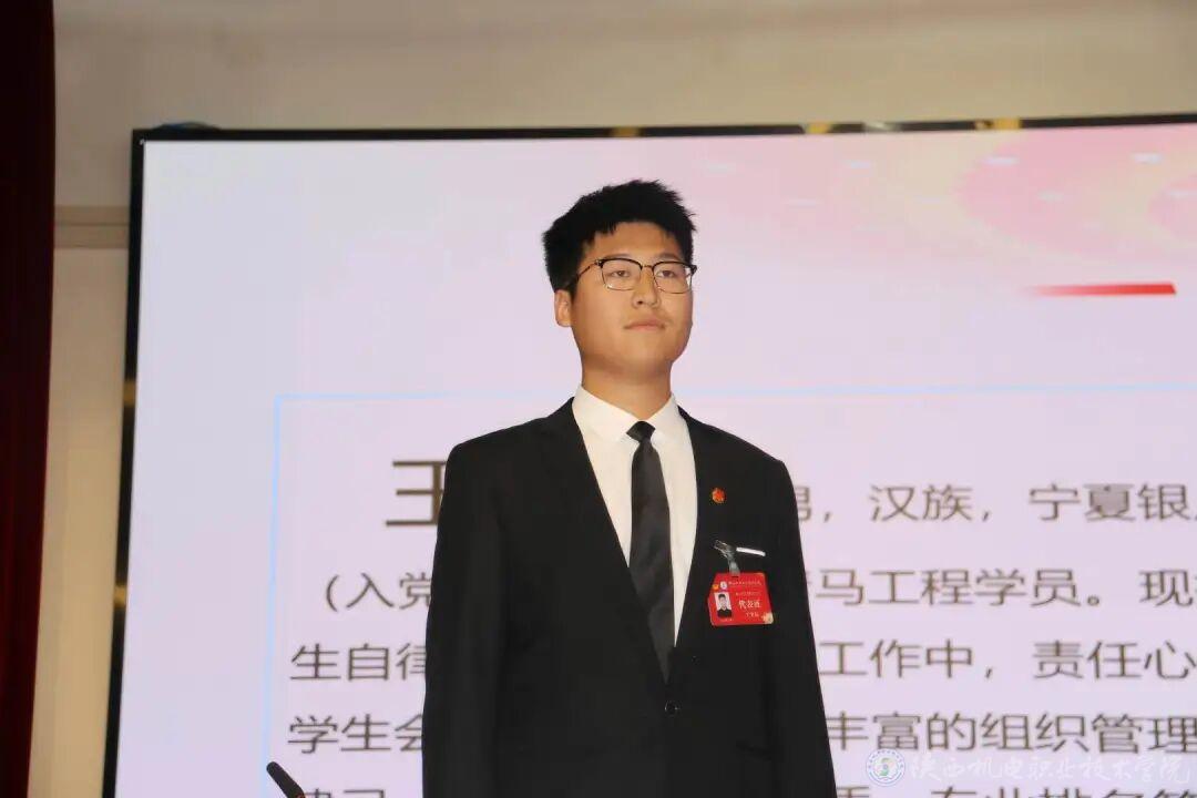 第四项,兄弟院校致辞。宝鸡职业技术学院学生会执行主席晏小波、宝鸡三和职业学院学生会执行主席刘金柱代表兄弟院校致辞向大会的召开表示祝贺,大会收到宝鸡文理学院、西安外国语大学、陕西国防工业职业技术学院、西安医学院、贵州建设职业技术学院等32所兄弟院校的贺信及祝福视频,对大会的召开表示祝贺。