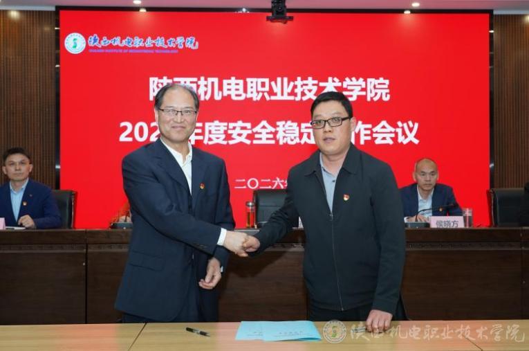 会上,党委书记伊逊智与二级单位代表——智能制造学院、电子信息学院负责人签订《2026年安全稳定工作目标责任书》,党委副书记、校长侯晓方与二级单位代表——学生处、后勤保障处负责人签订《2026年消防安全目标责任书》,明确责任书是各单位、各部门向校党委作出的郑重承诺,所有条款必须逐条落地、不打折扣,切实筑牢校园安全稳定防线。