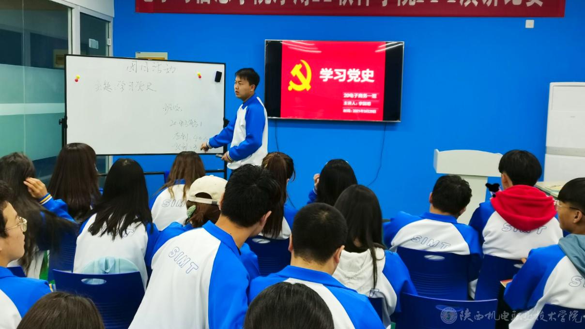 各班级在辅导员老师、学生干部的组织引导下开展党史纪录片学习、党史知识抢答、微课学习、英雄人物事迹介绍等形式多样的活动。
