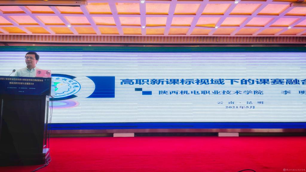 我院名师工作室主持人、教育部职业院校外语类专业教学指导委员会委员李明副教授应邀出席会议,并为大会作《高职新课标视域下的课赛融合教学实践研究》的交流报告和国赛备赛点评指导。