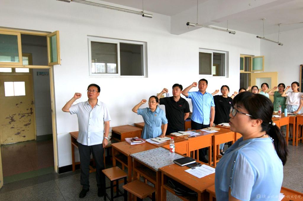 本次会议以重温入党誓词拉开序幕,全体党员面向党旗,心怀敬慕,庄严宣誓。会议的第二项内容是由支部书记满春燕同志对2021年上半年支部党史学习教育情况进行总结汇报,强调了在“两个一百年”奋斗目标历史交汇的关键节点,在全党集中开展党史学习教育的重要性。